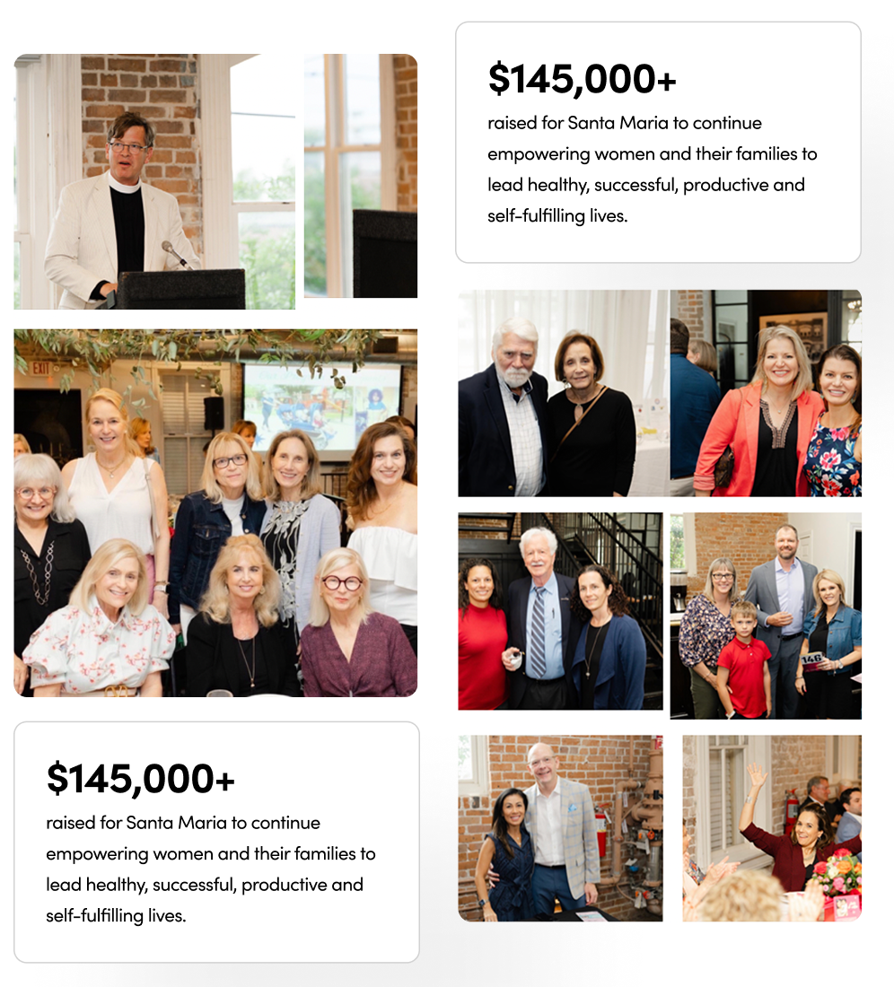 On April 16, 2024, more than 100 of Santa Maria’s dedicated supporters gathered at this annual fundraiser celebrating the thousands of women and families whose lives are transformed via Santa Maria’s work.  The event was held at Station3, a historic Houston fire station now used as a unique event venue.  A fitting place to celebrate Santa Maria who has been serving women and their families in Houston for more than 65 years.